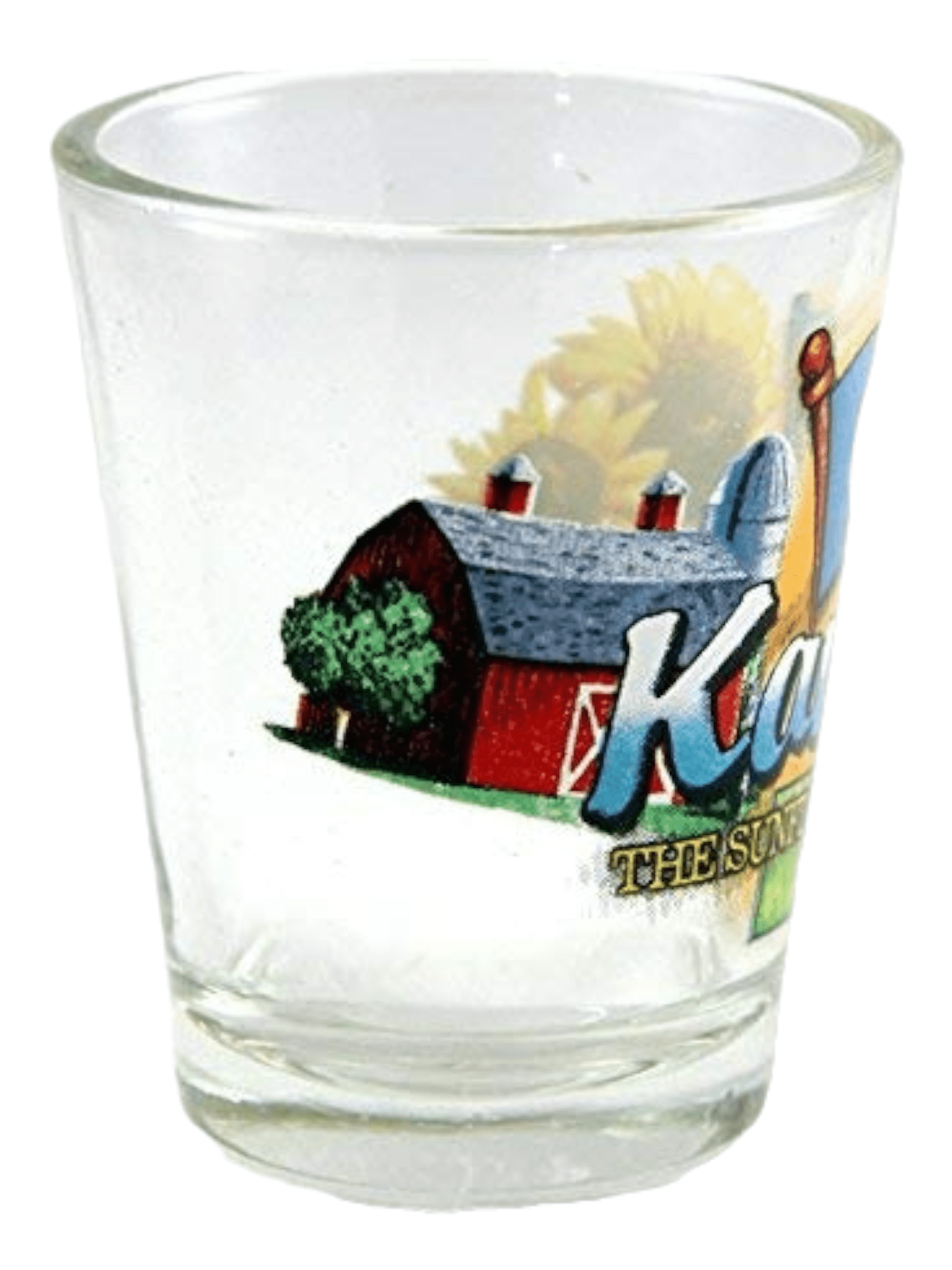 Here is a very rare and hard to find souvenir collectible shot glass from Kansas. It is a 5x6cm style shot glass measuring 2.25 inches tall and 1.8 inches in diameter.